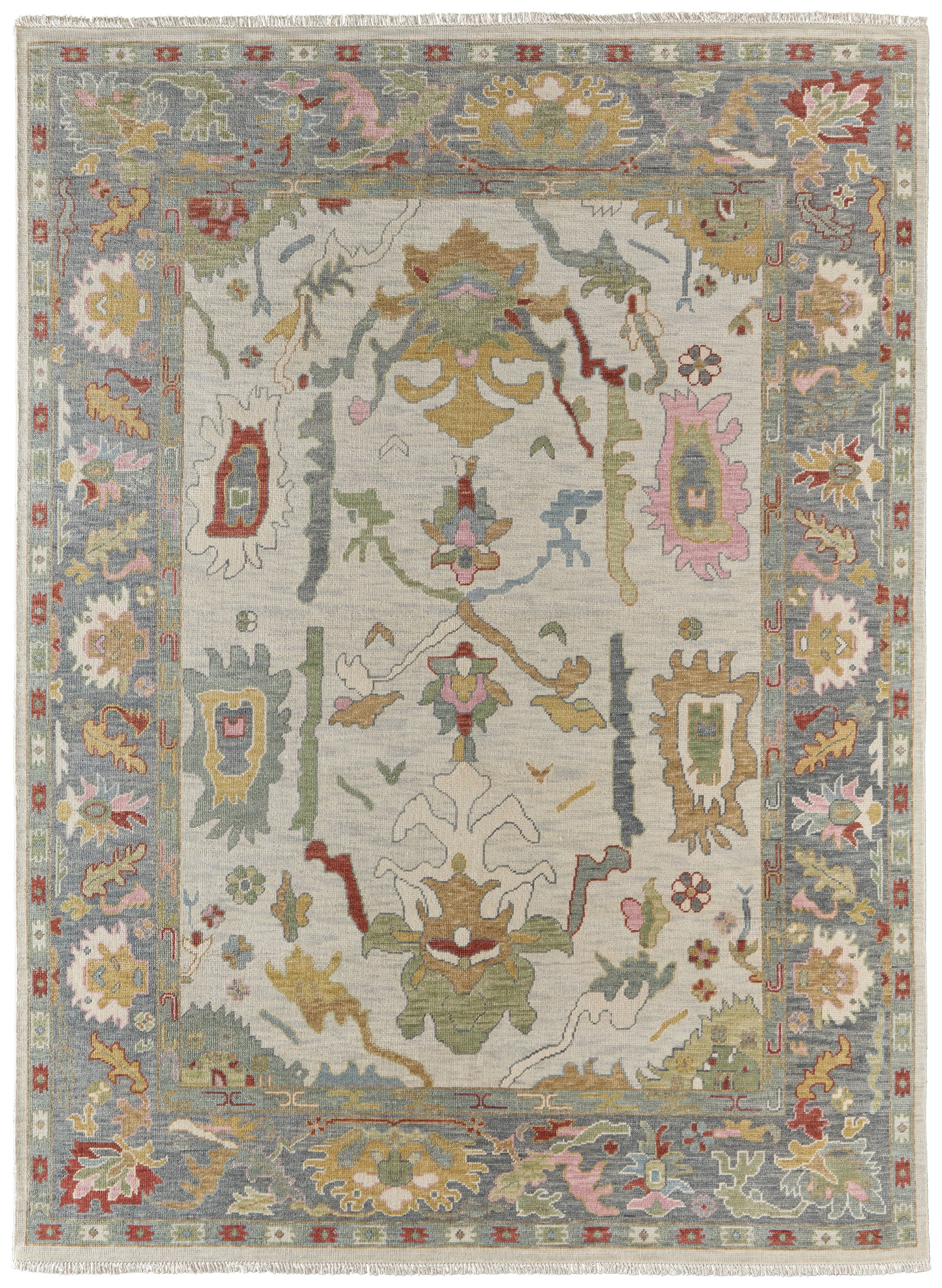 Rotate your rug often. Special care should be taken with the fringe when vacuuming, a vacuum can catch and pull the fringe. Spot clean with a solution of mild detergent and water and hang to dry if possible. Professional cleaning recommended periodically.