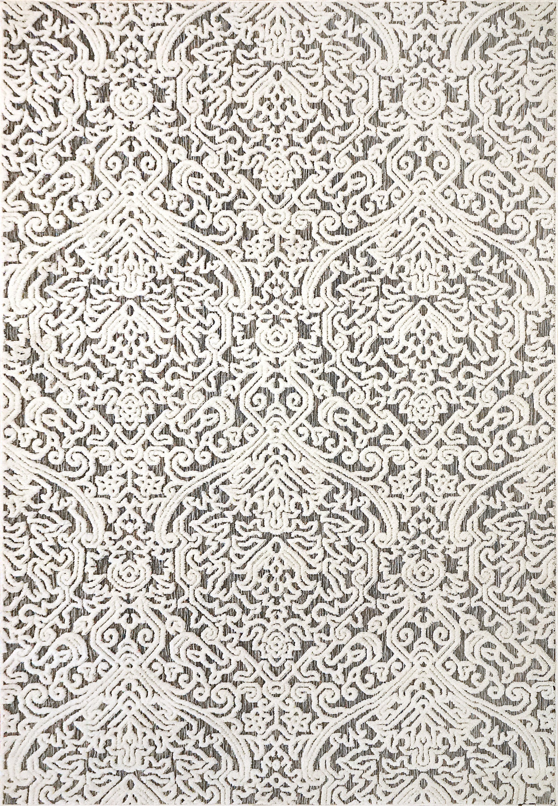 Lotus displays intricate contemporary designs that embolden any modern aesthetic. The detailed weaving in these rugs exists in three facets: the high-low texture, the changing yarn colors as a backdrop, and the designs. The color palette is more than meets the eye with these rugs, with ivory overlaying a more complex color scheme underneath, including black, blue, and multicolored yarns. Tightly woven and firm in their composure, these rugs are both durable and practical in their maintenance.