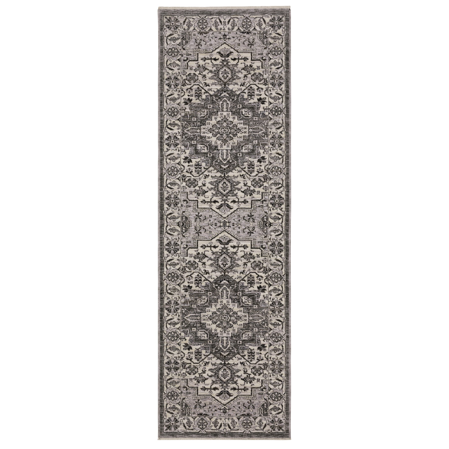 The Chamberlain collection features a dense, low profile, million-point construction power-loomed of incredibly soft polyester yarns that are space-dyed in a beautiful range of neutral shades from deep charcoal to soft ivory. Accent yarns of multi-level shrink polyester add surface interest to global traditional designs, featuring Persian motifs in allover patterns, center medallions and a vintage stripe in the collection.
