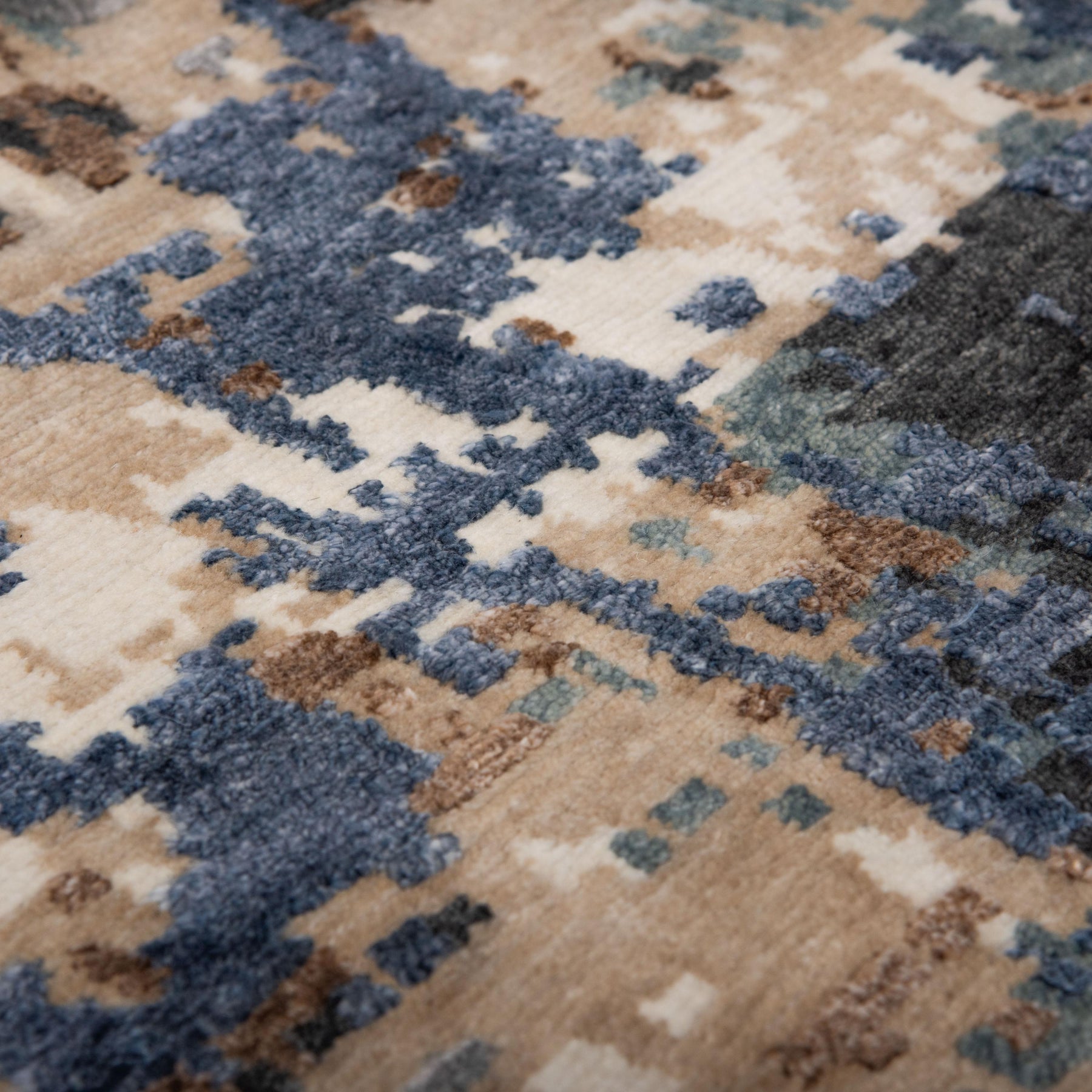 Starting with warp strings stretched on a loom, skilled artisans Hand tie each individual knot to create a true piece of art. Pieces from the Evolution collection all feature beautifully blended fashion colors accented with shimmering Tencel.