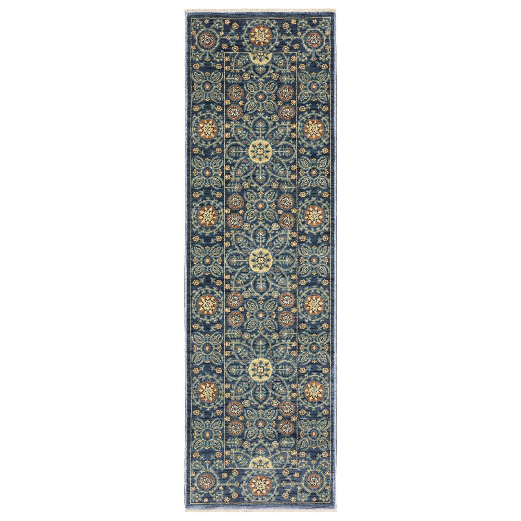 The Francesca collection features softened jewel tones of sapphire and turquoise, muted gold, and cinnabar alongside nature-inspired neutrals and an earthy brown and green. It is power-loomed of space dyed, super soft polypropylene. Francesca showcases updated traditional patterns highlighting open fields, updated borders, and some folk-art flair.