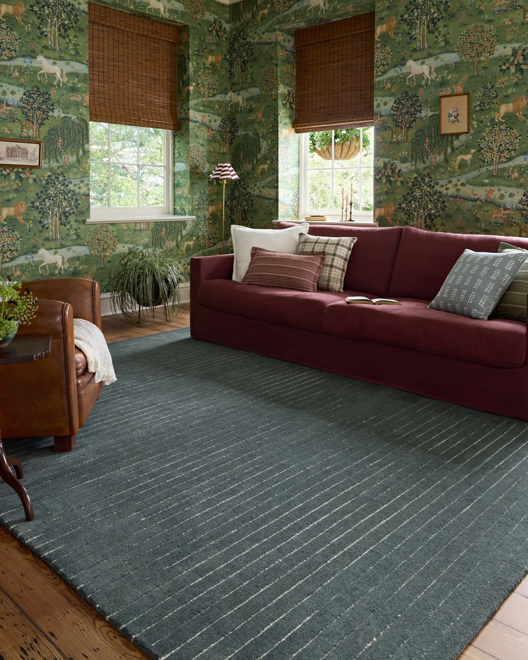 The Henry Collection from Chris Loves Julia x Loloi is a hand-tufted area rug that adds a touch of personality to a solid-colored design that can easily pair with other patterns in the room. These designs feature tufted stripes for subtle contrast and depth. The rug’s wool pile is thick and satisfying to walk on, with gently nuanced color variation. This collection is hand-tufted of 100% wool in India and GoodWeave-certified, ensuring our commitment to ethical production and the support of weavers’ communities. Some shedding is expected and a natural characteristic of wool rugs; we recommend vacuuming frequently without a beater bar.