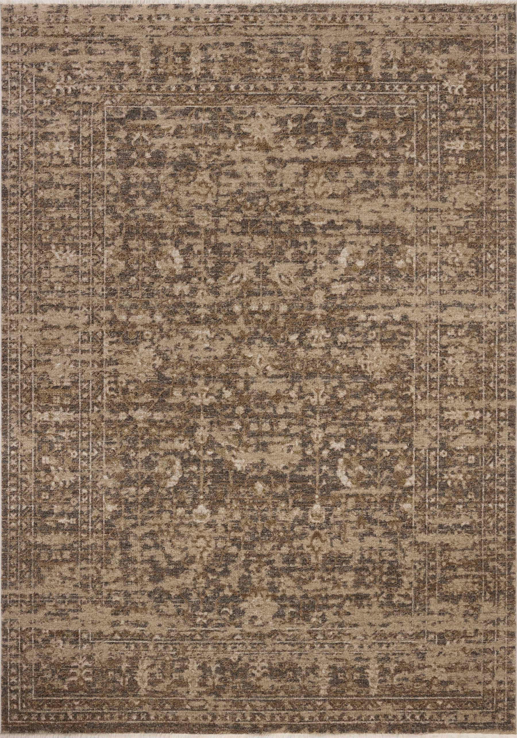 The Haywood Collection is an easy-to-clean, earth-toned area rug with a subtly distressed traditional design. Haywood is power-loomed of polyester in Turkey, a durable area rug for a living room, bedroom, dining room, or other high-traffic spaces.