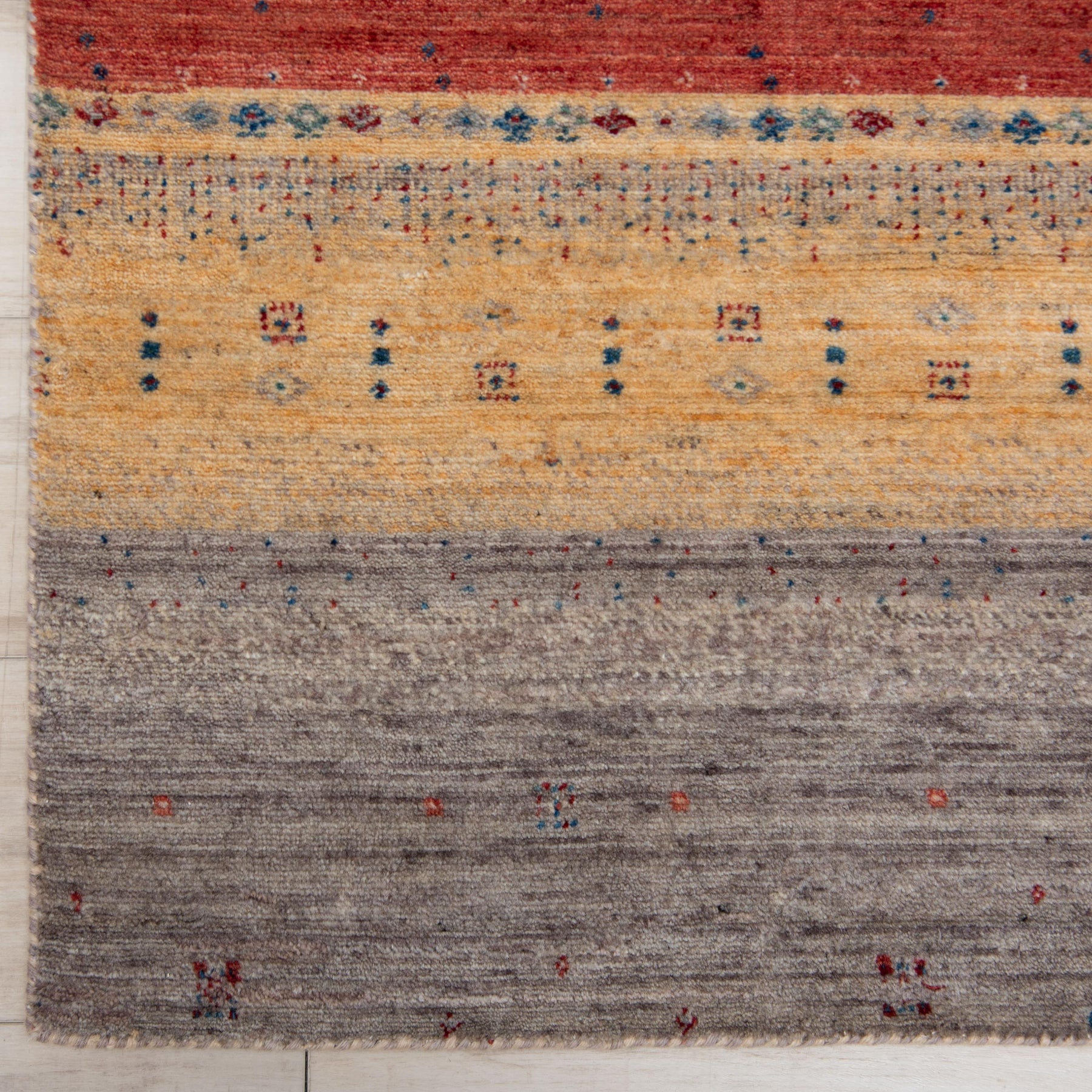 Our Spectrum Collection strikes a perfect balance between contemporary style and artisanal technique. Featuring bold, stripe-driven designs, each rug is machine-woven with premium New Zealand wool and dyed using natural herbal pigments. Every piece undergoes a meticulous hand-finishing process—washed, carved, and detailed by hand—for a richly textured look that brings warmth and depth to any room.